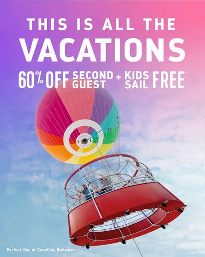 Booking Window: October 3, 2025 – November 3, 2025 • Sailing Window: Sailings departing on or after October 4, 2025 • Offer details: Buy One Guest, Get Second Guest 60% Off Kids Sail Free • Booking Window: October 3, 2025 – November 3, 2025 • Sailing Window: Sailings departing on or after October 4, 2025 • Offer Details: Guest 12 and under sail free on sailings 3 nights or longer • Offer excludes: Thanksgiving Sailings (Departing between November 20 – November 28, 2025); (Departing between November 19 – November 27, 2026), Holiday Sailings; (Departing between December 18, 2025 – January 5, 2026); (Departing between December 17, 2026 – January 4, 2027), Spring Break Sailings (Departing between March 6 – April 9, 2026); (Departing between March 5 – April 1, 2027), Alaska Cruise Tour Sailings (Departing between May 16 – September 12, 2025); (Departing between May 15 – September 11, 2026), Summer sailings (Departing between May 21 – September 4, 2026) excluding Harmony of the Seas sailing July 26, 2026; Chinese New Year sailing on Ovation of the Seas (Departing February 15, 2026- February 18, 2026)